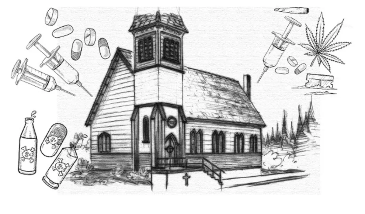 Around Our Lord there were syringes. There were capsules of medicine. There were medicine bottles. There were thin razor blades. Those items were floating around the remorseful face of our Lord. There were liquor bottles, too. And every room I went to I would stand and look at it. And it was identical to the other ones, but they were all handmade. They were all originally made, they weren’t stamped out. I kept my mouth shut.